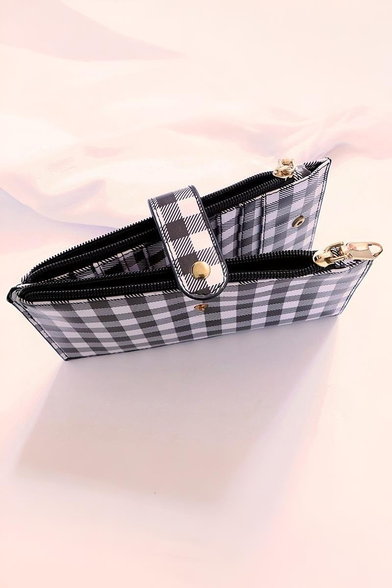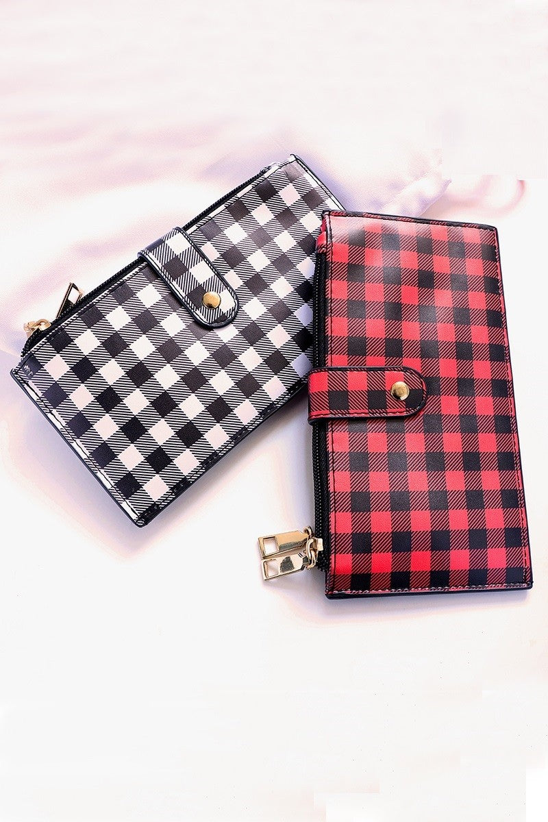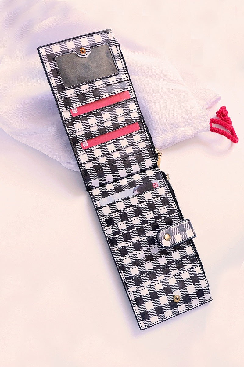 Checkered slim credit card zipper wallet.