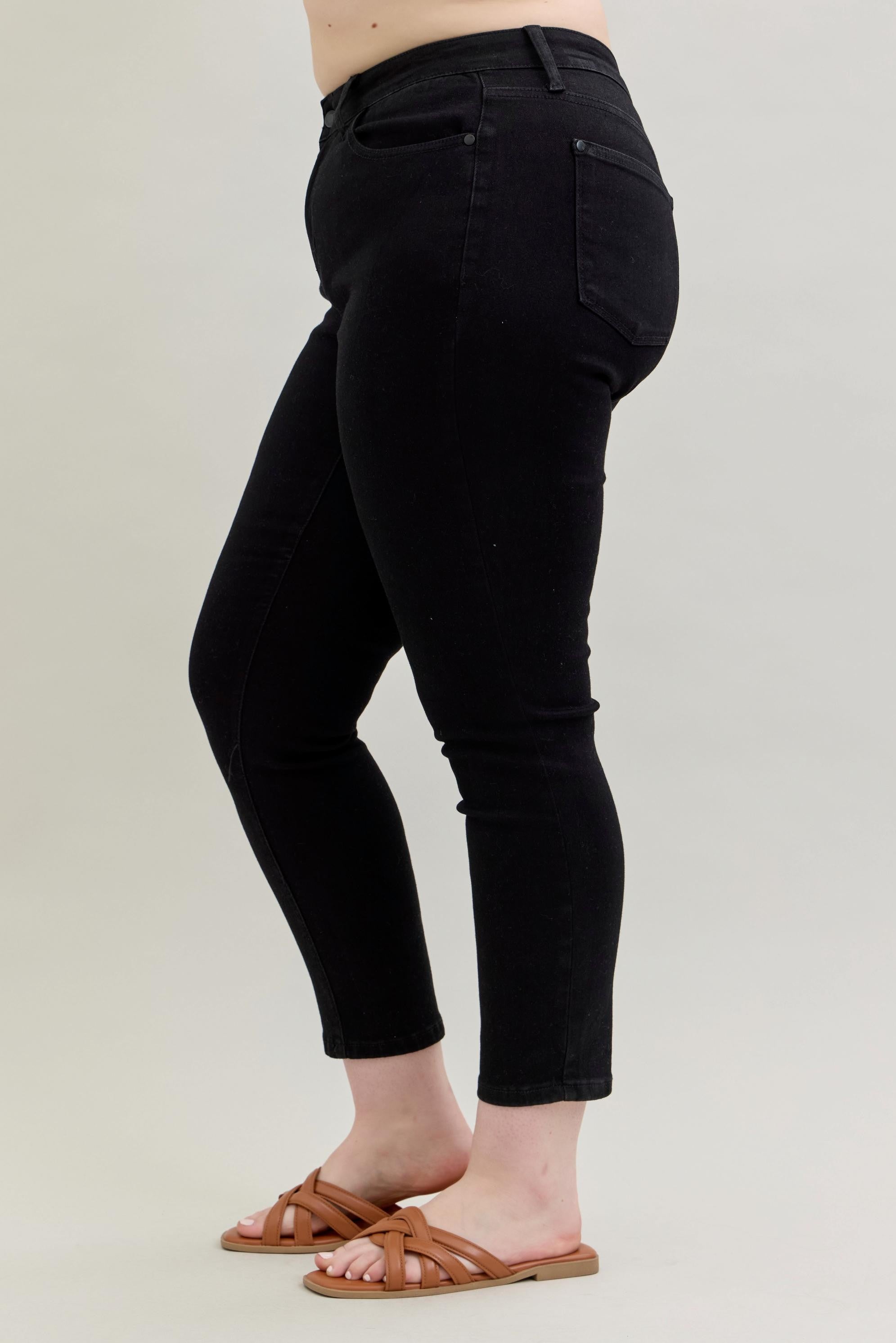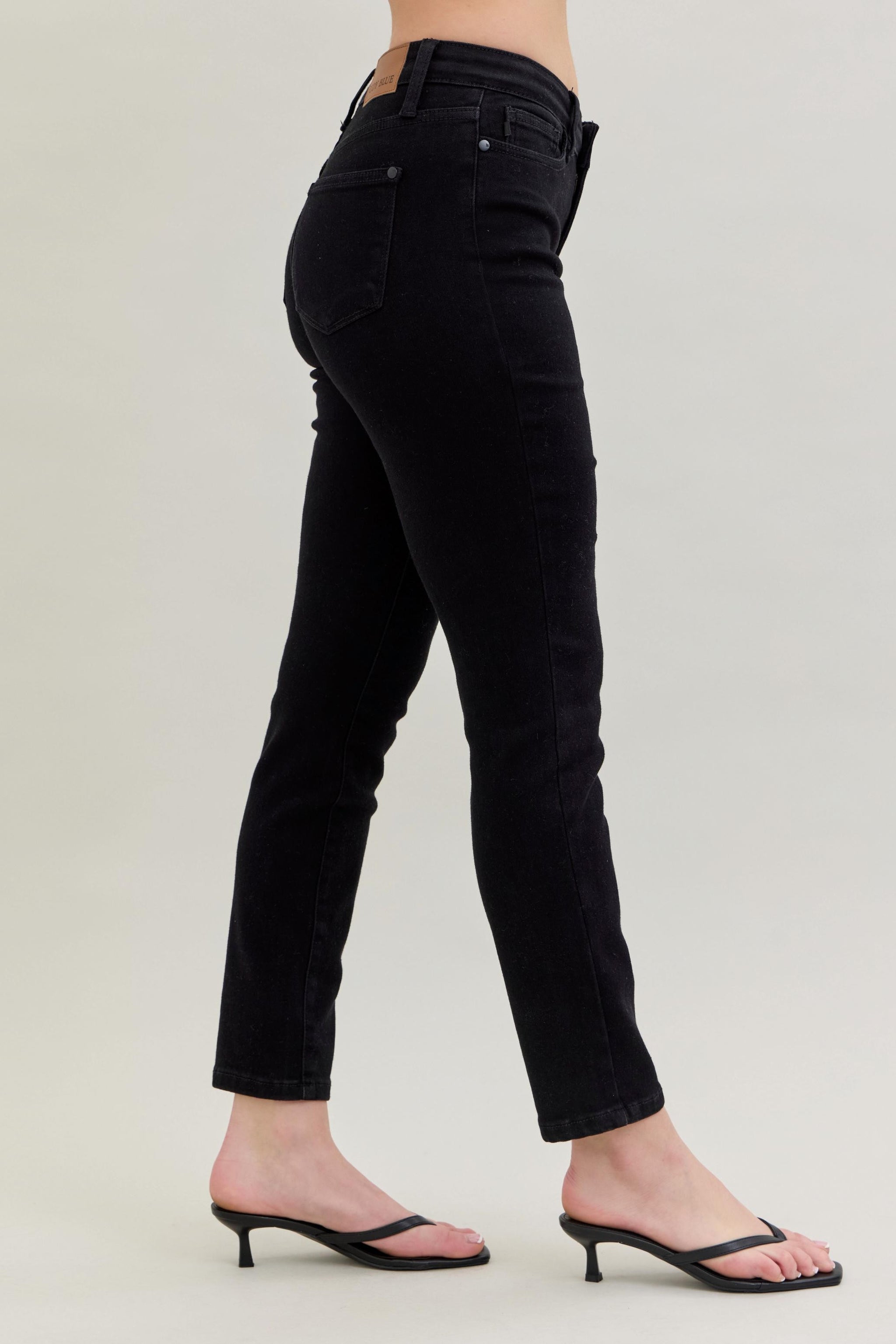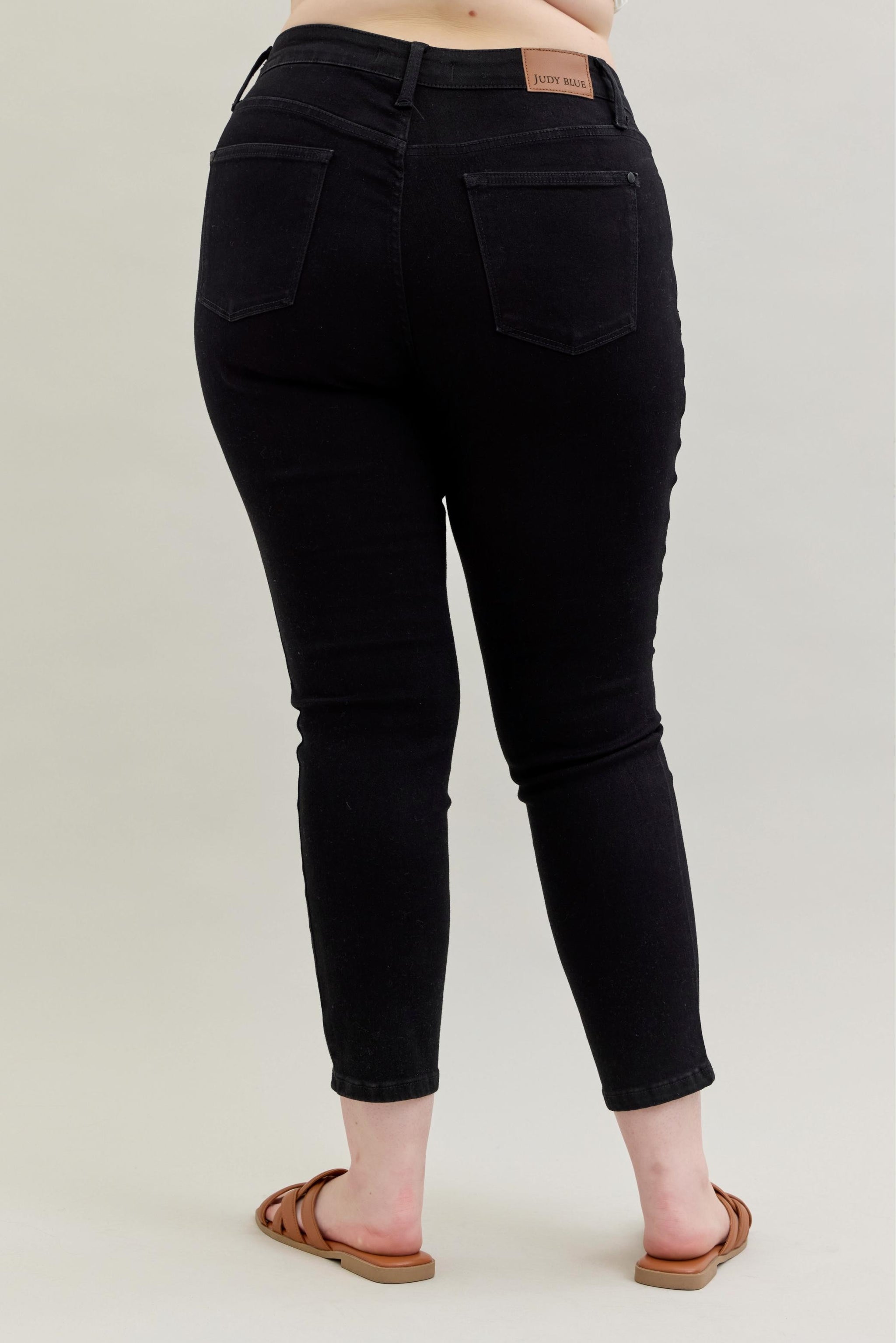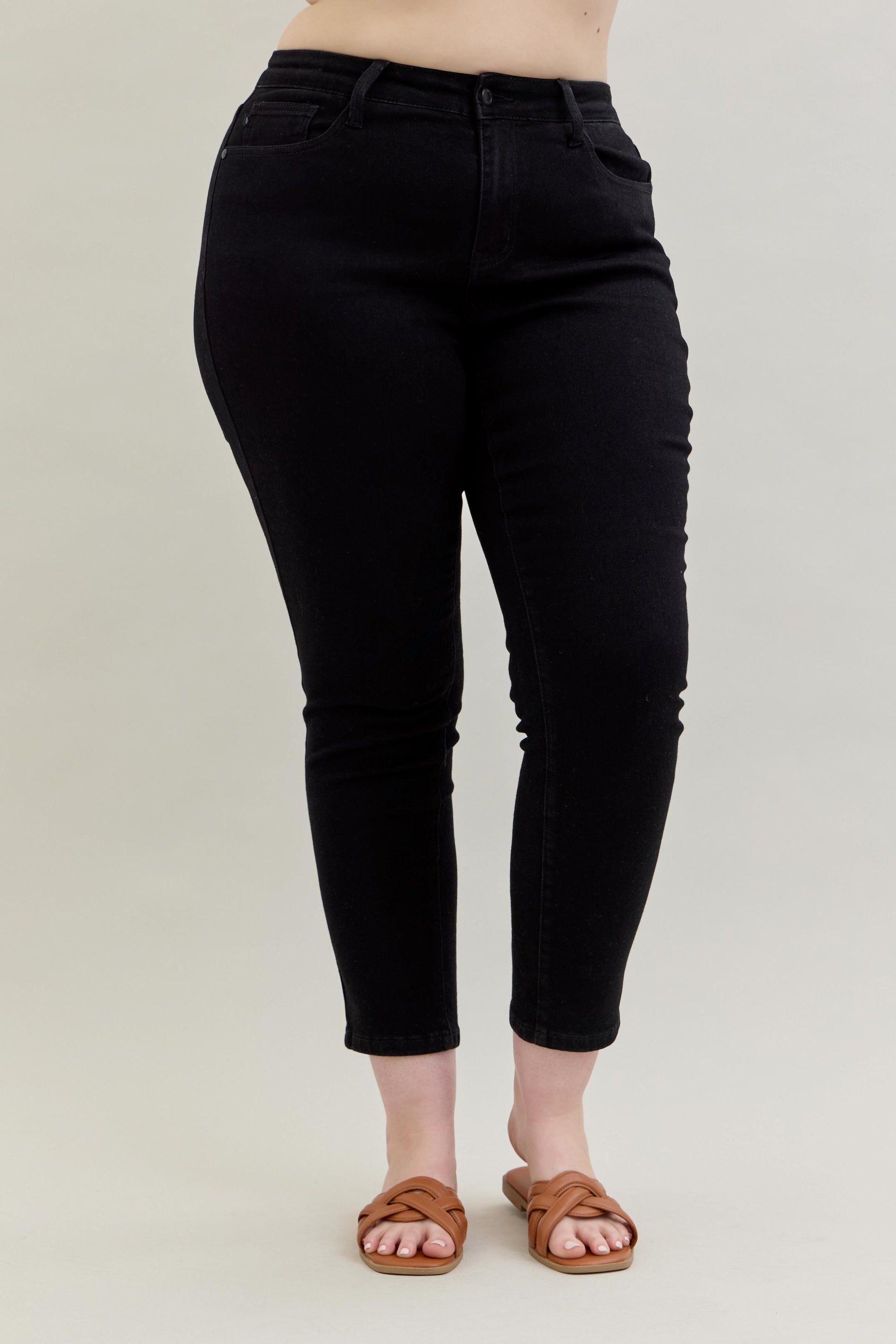 Judy Blue mid-rise slim-fit black jeans. NO distressing.