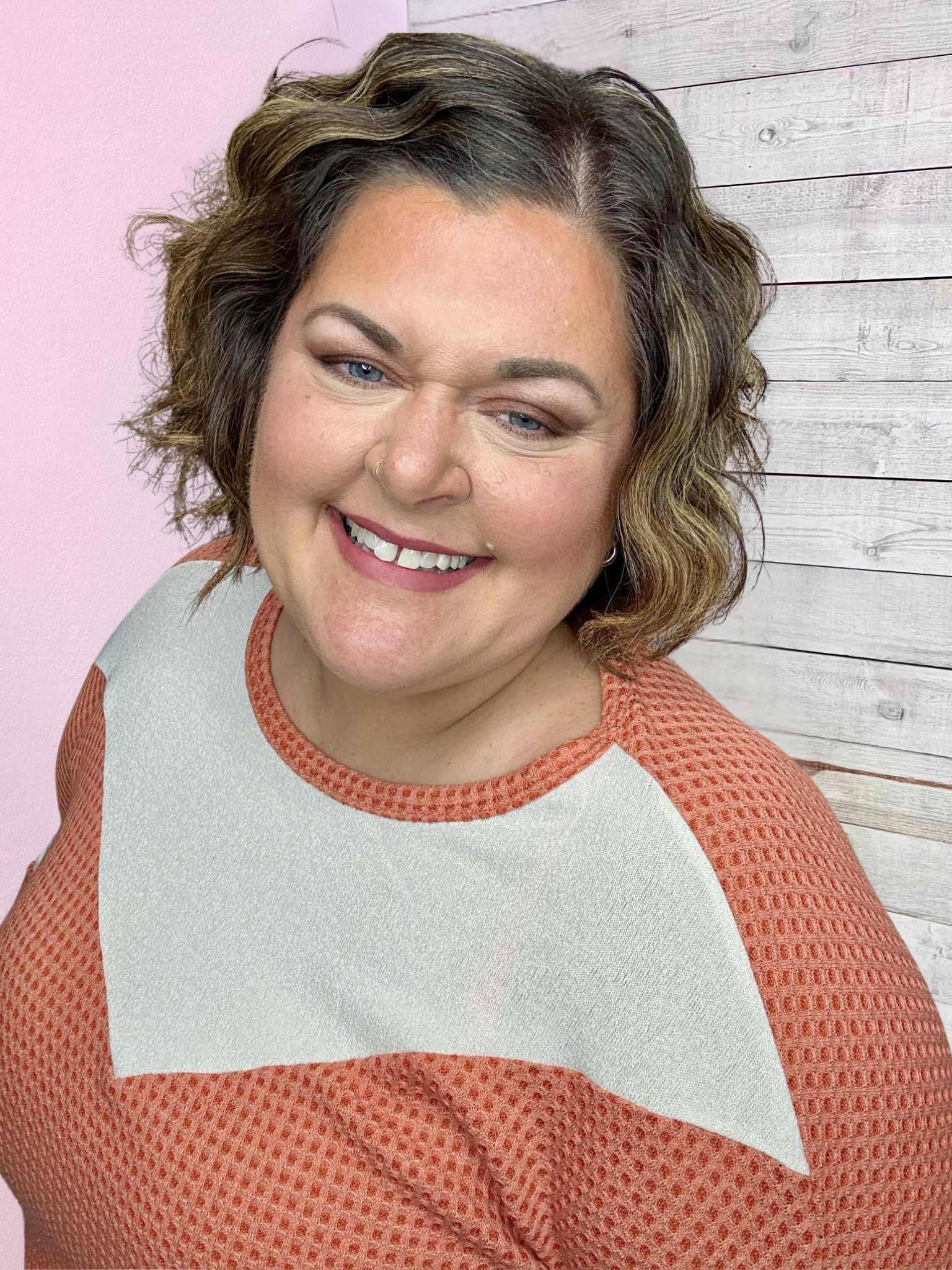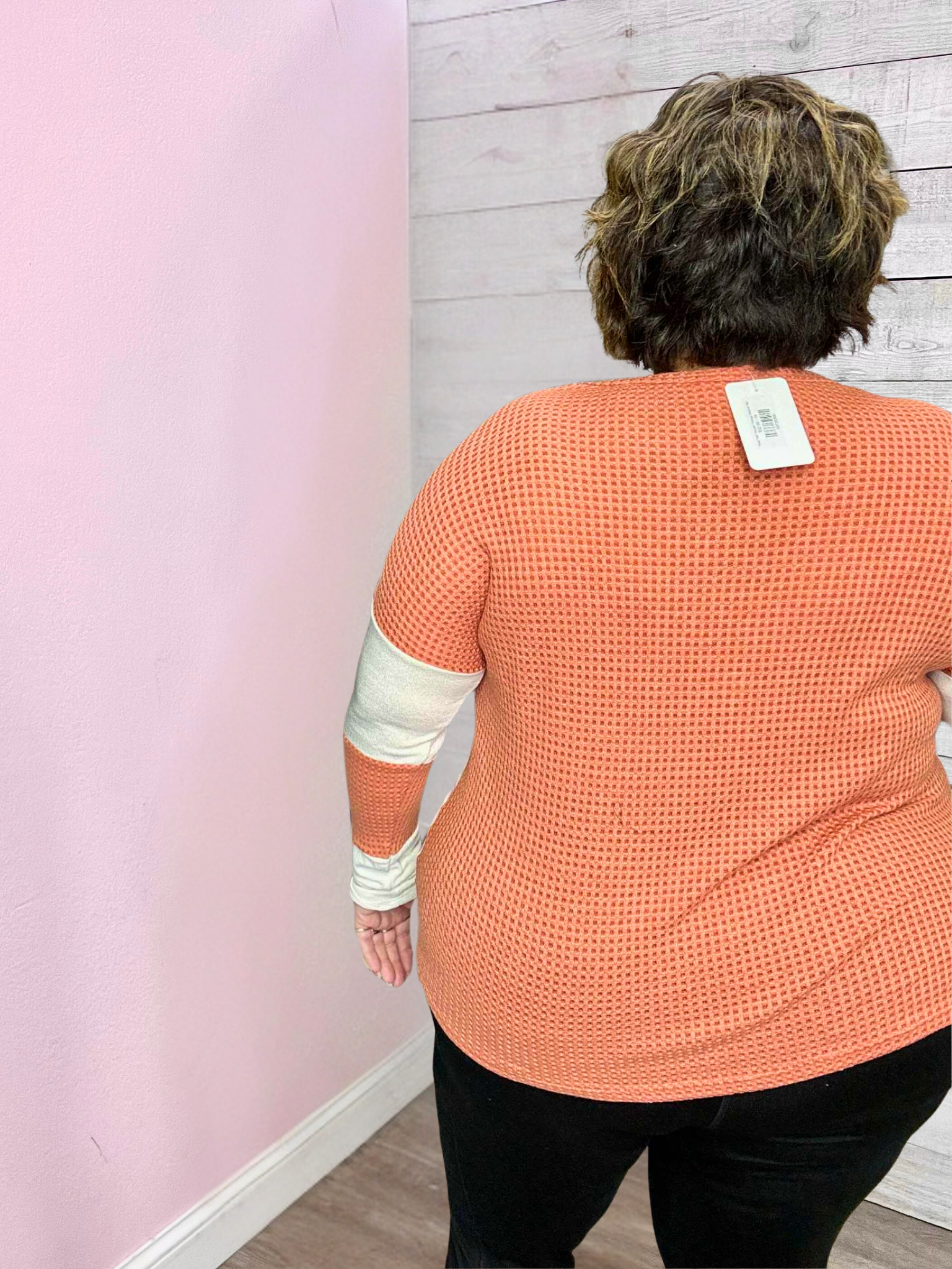 The extended-sized model is 5'3 and is wearing a 2X.