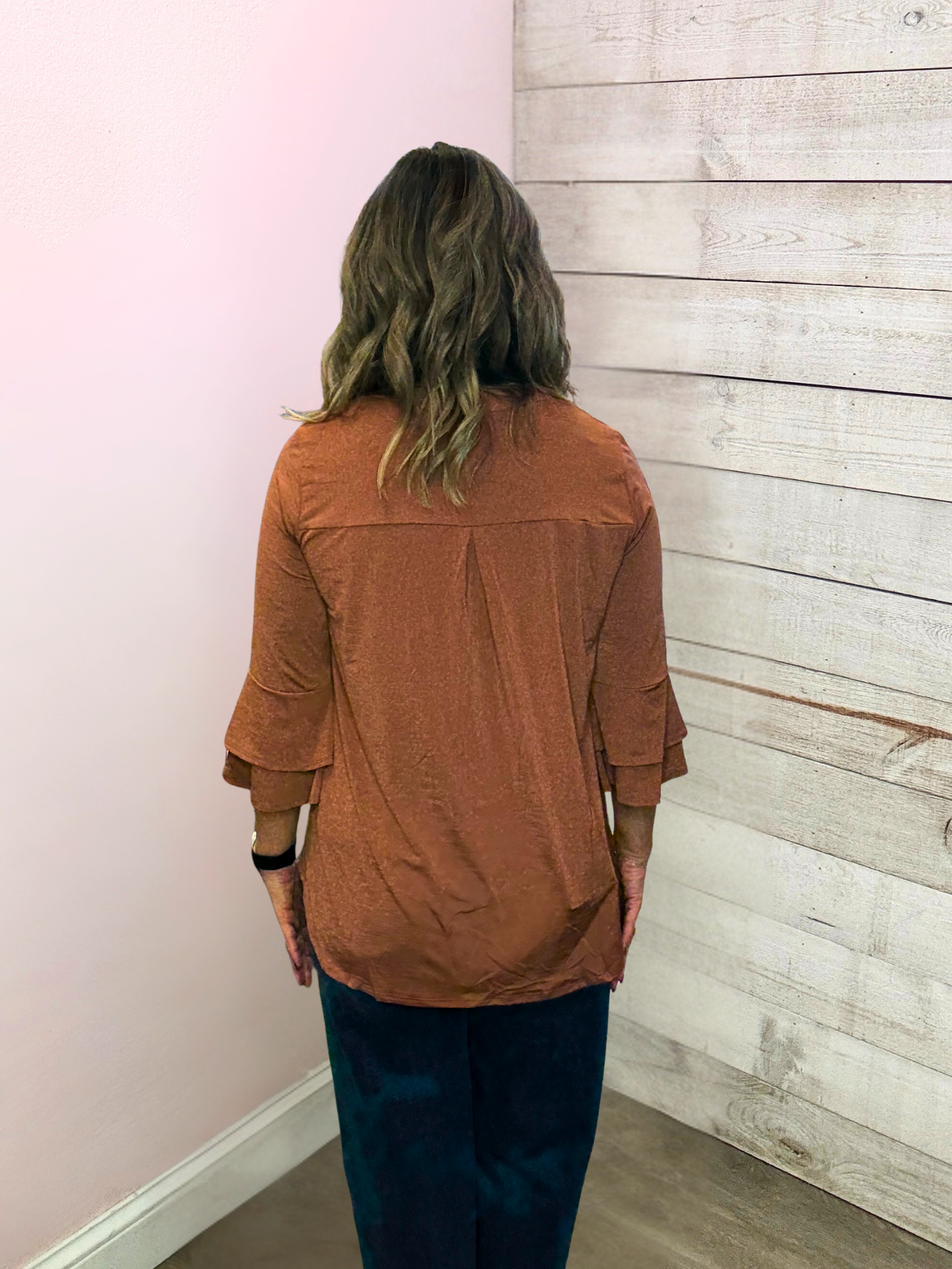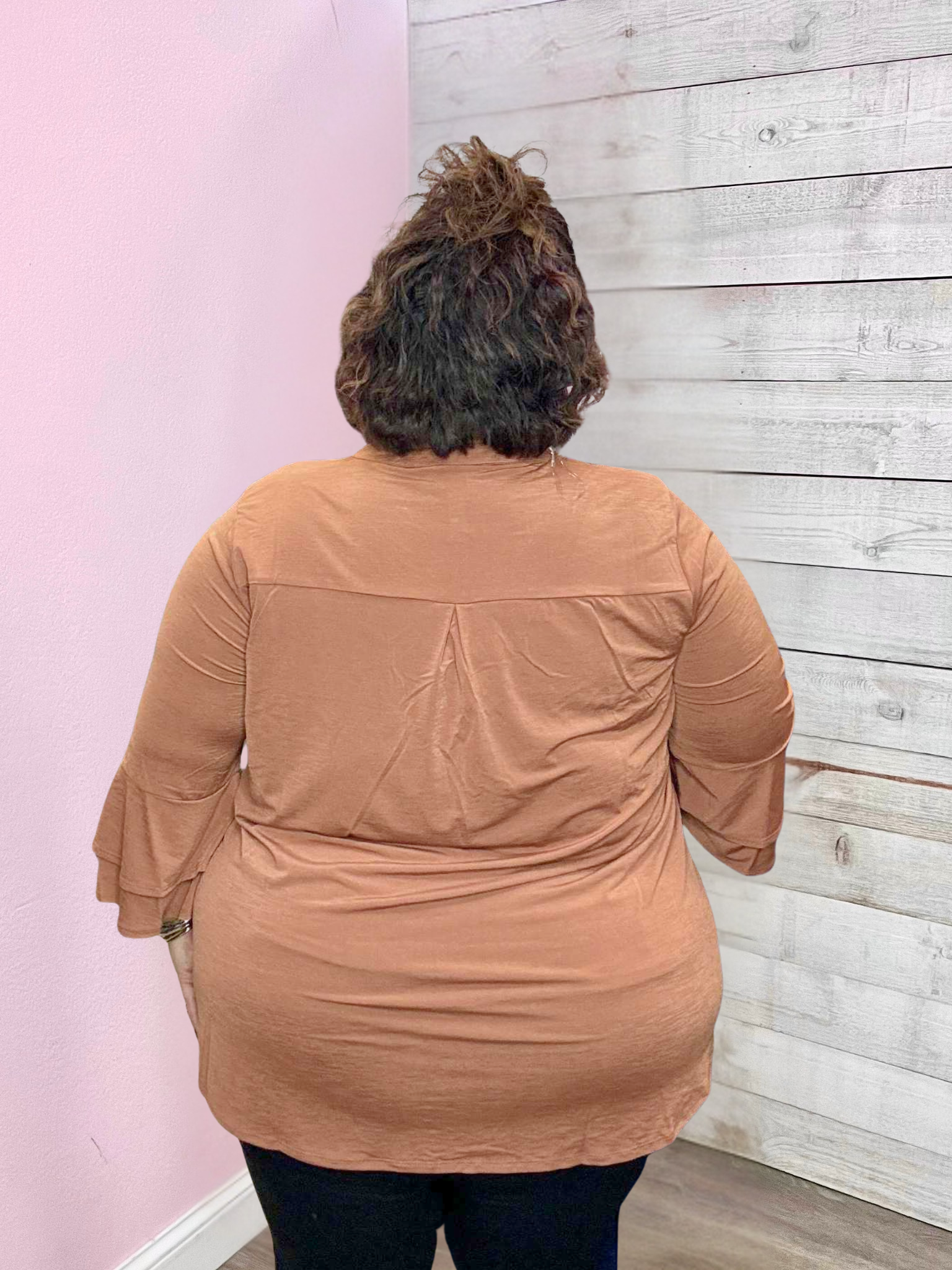 Meet the belled LIZZY! A fresh take on effortless elegance. Designed with a relaxed fit, this versatile top features a refined Lizzy neck and beautifully tiered bell sleeves that add a touch of romantic flair. True to size.